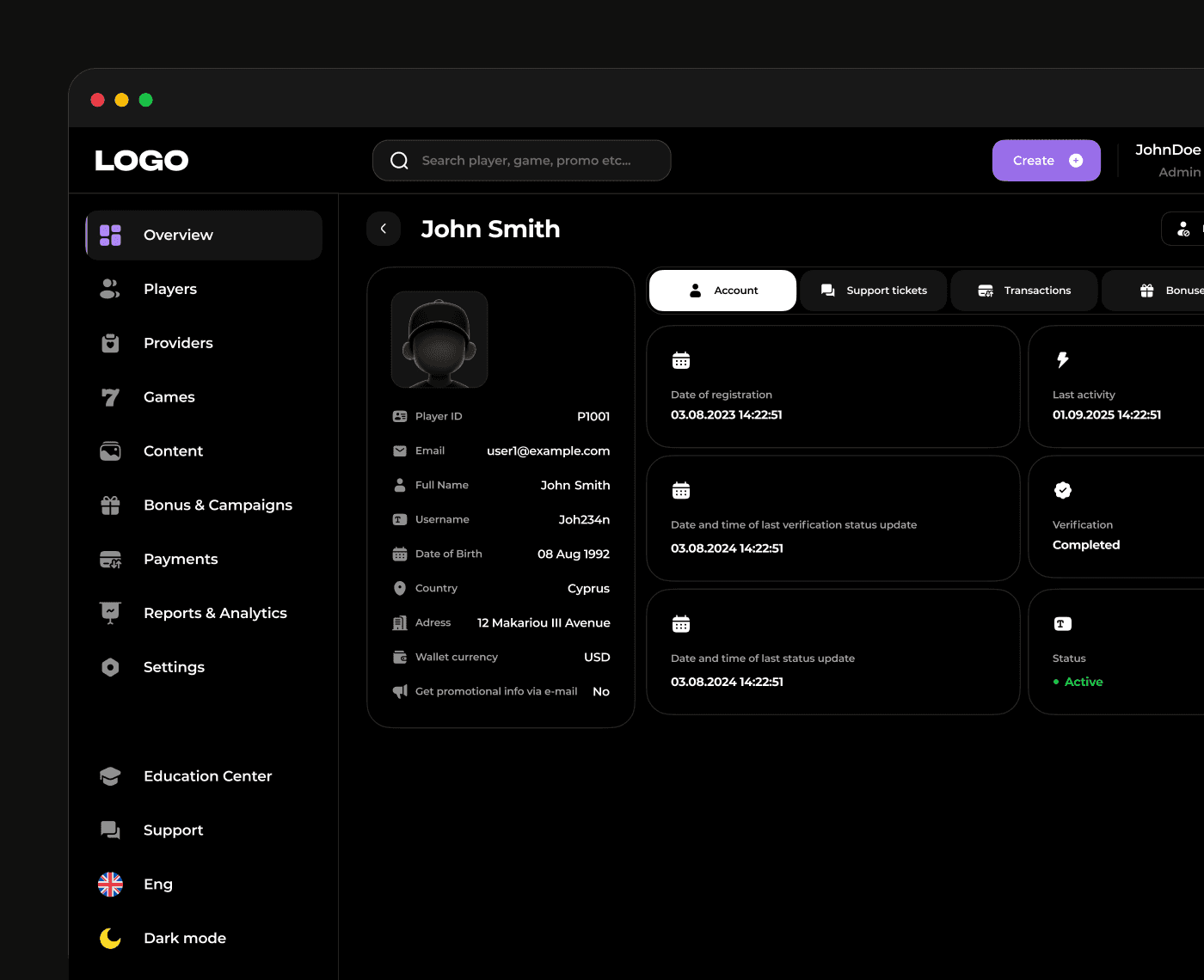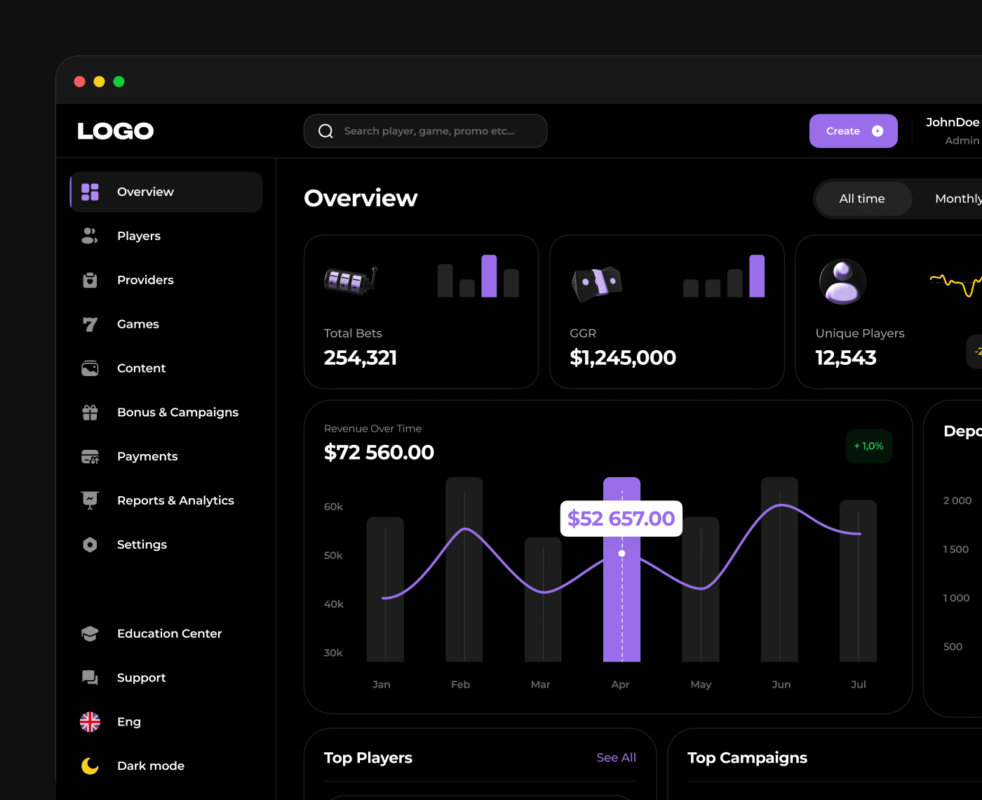 Our Back Office module serves as a central hub for casino managers and support teams, giving you complete oversight of players and game content.